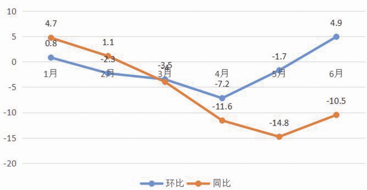 6月份,國際大宗商品價格回暖,國內(nèi)制造業(yè)穩(wěn)步恢復(fù),市場需求繼續(xù)改善。國家統(tǒng)計局近日公布的數(shù)據(jù)顯示,6月份,全國工業(yè)生產(chǎn)者出廠價格環(huán)比上漲0.4%,同比下降3%;上半年,工業(yè)生產(chǎn)者出廠價格比去年同期下降1.9%。其中,采掘工業(yè)出廠價格環(huán)比止降轉(zhuǎn)漲,同比繼續(xù)下降但降幅收窄。6月份,采掘工業(yè)出廠價格環(huán)比上漲4.9%,同比下降10.5%;上半年采掘工業(yè)出廠價格同比下降6%。