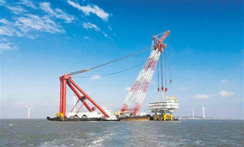 日前,福建首座220kV海上升壓站“落戶”三峽集團(tuán)福清興化灣海上風(fēng)電場。圖為國內(nèi)首個將SVG動態(tài)無功補償裝置設(shè)置在海上的升壓站,也是目前國內(nèi)集成度最高,單體最大最重的海上升壓站。