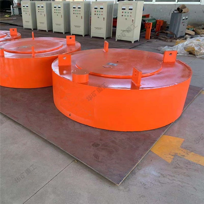 電磁除鐵器(亦稱PDC系列盤式、RCDY系列)是一種用于清除粉狀或塊狀非磁性物料中雜鐵的除鐵裝置。其內(nèi)部采用電工專用樹脂澆注, 自冷式全密封結構。具有透磁深度大、吸力強、防塵、防雨、耐腐蝕等特點,在極其惡劣的環(huán)境中仍能可靠運行??膳cCF、CFL系列懸掛式電磁除鐵器通用。其主要性能指標均達到或高于JB/T7689-2004標準要求,該產(chǎn)品可除去混雜在非磁性物料中0.1~35公斤的鐵磁性物質(zhì)。