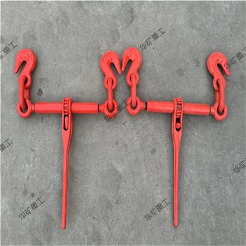 棘輪式封車器是專為替代礦業(yè)運輸中捆料用的鐵絲和鋼絲繩而研制生產(chǎn)的新型產(chǎn)品。它要求在礦車兩邊焊接兩條鏈條,利用鏈環(huán)與鏈環(huán)之間互扣力把封車器的掛鉤平放在鏈環(huán)上即可被卡死,有效防止脫落。使用方便簡單,安全可靠。封車器替代鐵絲或鋼絲繩循環(huán)使用,極大地節(jié)約了生產(chǎn)成本,深受用戶歡迎。