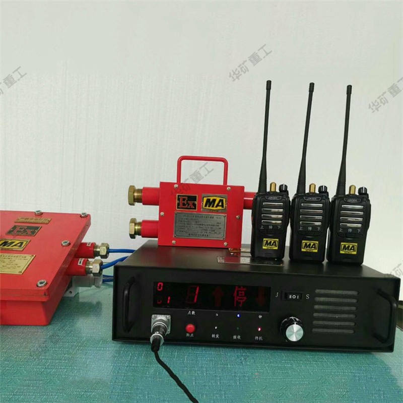 本系統(tǒng)實(shí)現(xiàn)井上機(jī)房人員和斜井機(jī)車或豎井吊罐中維修人員相互通話的通訊設(shè)備。它可以有效地傳遞語音及打點(diǎn)信號(hào),使井上有關(guān)人員和斜井及豎井內(nèi)人員建立起緊密的聯(lián)系。系統(tǒng)由設(shè)在機(jī)房?jī)?nèi)的基地臺(tái)、穩(wěn)壓電源,鋪設(shè)在井道中泄漏電纜以及人身攜帶的手持機(jī)所組成?;嘏_(tái)收到的語音、打點(diǎn)信號(hào)由機(jī)外的話筒喇叭發(fā)出,在85dB的噪音環(huán)境中仍能與手持機(jī)進(jìn)行通話或打點(diǎn)聯(lián)系。(基地臺(tái)具有記憶并顯示打點(diǎn)次數(shù)的功能)。該系統(tǒng)配套的設(shè)備均可以在具有煤塵、爆炸性氣體的礦井中使用。安裝了這套設(shè)備,能夠保障斜井人員及豎井檢修人員安全、可靠地工作?;嘏_(tái)、穩(wěn)壓電源安放在機(jī)房的桌面上,使用127V交流照明電。