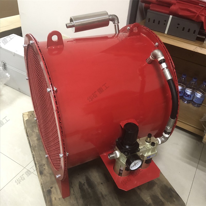 FQ系列礦用氣動壓入式軸流局部通風(fēng)機(jī)(以下簡稱為通風(fēng)機(jī)),是一種由氣馬達(dá)驅(qū)動的通風(fēng)機(jī),通風(fēng)機(jī)結(jié)構(gòu)緊湊,體積小,安裝方便,使用安全,噪音小,適用于吹排煤礦井下通風(fēng)死角,特別是隅角區(qū)域聚集的瓦斯和有害氣體。通風(fēng)機(jī)的結(jié)構(gòu)特征為煤礦用、隔爆型、軸流式。