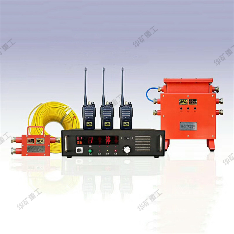 本系統(tǒng)實(shí)現(xiàn)井上機(jī)房人員和斜井機(jī)車或豎井吊罐中維修人員相互通話的通訊設(shè)備。它可以有效地傳遞語(yǔ)音及打點(diǎn)信號(hào),使井上有關(guān)人員和斜井及豎井內(nèi)人員建立起緊密的聯(lián)系。系統(tǒng)由設(shè)在機(jī)房?jī)?nèi)的基地臺(tái)、穩(wěn)壓電源,鋪設(shè)在井道中泄漏電纜以及人身攜帶的手持機(jī)所組成。基地臺(tái)收到的語(yǔ)音、打點(diǎn)信號(hào)由機(jī)外的話筒喇叭發(fā)出,在85dB的噪音環(huán)境中仍能與手持機(jī)進(jìn)行通話或打點(diǎn)聯(lián)系。(基地臺(tái)具有記憶并顯示打點(diǎn)次數(shù)的功能)。該系統(tǒng)配套的設(shè)備均可以在具有煤塵、爆炸性氣體的礦井中使用。安裝了這套設(shè)備,能夠保障斜井人員及豎井檢修人員安全、可靠地工作?;嘏_(tái)、穩(wěn)壓電源安放在機(jī)房的桌面上,使用127V交流照明電。