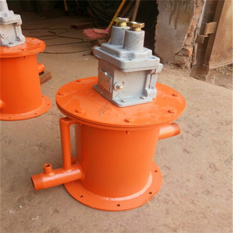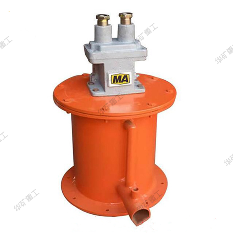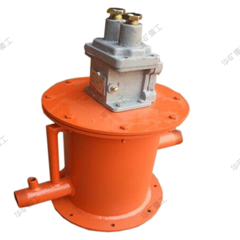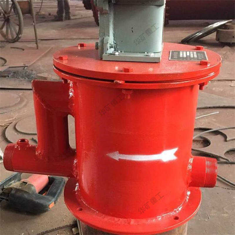 斷水保護(hù)裝置由隔爆外殼和內(nèi)部組裝微動(dòng)開關(guān)組成,外殼包括主腔和接線箱,運(yùn)動(dòng)部分為直動(dòng)式。水箱內(nèi)有不銹鋼浮子,浮子室有進(jìn)水口,浮子、密封墊及排氣管出水口組成;利用水的浮力使浮子浮起打開微動(dòng)開關(guān),保證泵的控制回路接通;礦用微動(dòng)隔爆開關(guān)管道無水時(shí)浮子落下,微動(dòng)開關(guān)打開,泵的控制回路斷開。還可根據(jù)需要在出水口安裝水壓表顯示供水管的壓力(安裝磁化水室)。