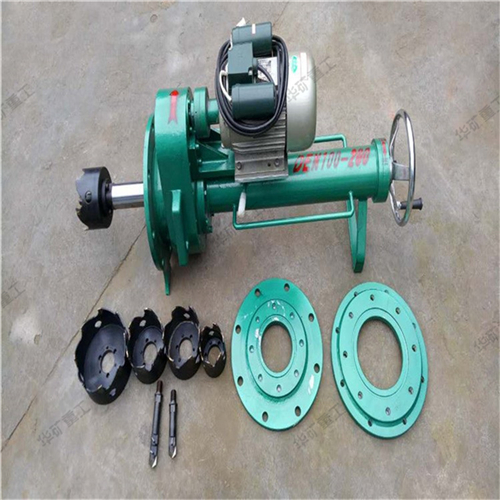 4、本機裝拆簡單,轉(zhuǎn)移作業(yè)地點方便。當(dāng)管卡、閥門安裝在被開孔管道上后,可先將主機裝在閥門上,然后再將電機插入電機托架上,旋動鎖緊螺母手柄即可將電動機牢牢地緊鎖在電動機托架上,即安裝完畢。便可接通電源開始鉆孔;同理,開孔完成后,可方便地使電動機于電動機托架分離,再拆下主機,輕松