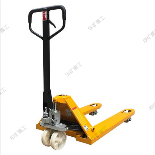 在使用時(shí),將貨叉插入托盤孔內(nèi),由人力驅(qū)動(dòng)液壓系統(tǒng)來(lái)實(shí)現(xiàn)托盤(貨物)的起升和下降,并由人力拉動(dòng)完成搬運(yùn)作業(yè),是托盤運(yùn)輸工具中使用簡(jiǎn)便、有效、常見的裝卸搬運(yùn)工具。