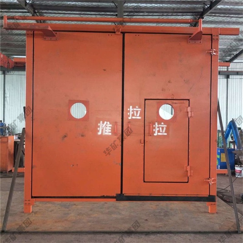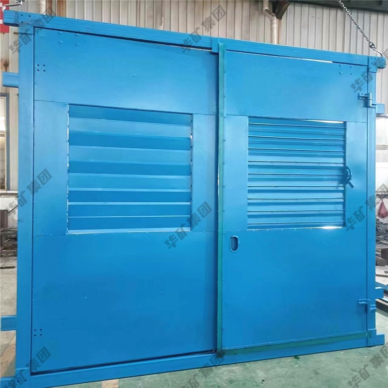 礦用無壓風(fēng)門主要用于礦山井下進回風(fēng)巷和主要進回風(fēng)巷之間每個聯(lián)絡(luò)巷中。雙扇無壓風(fēng)門運用聯(lián)桿平衡機構(gòu),開啟力小,不需再設(shè)反向風(fēng)門。