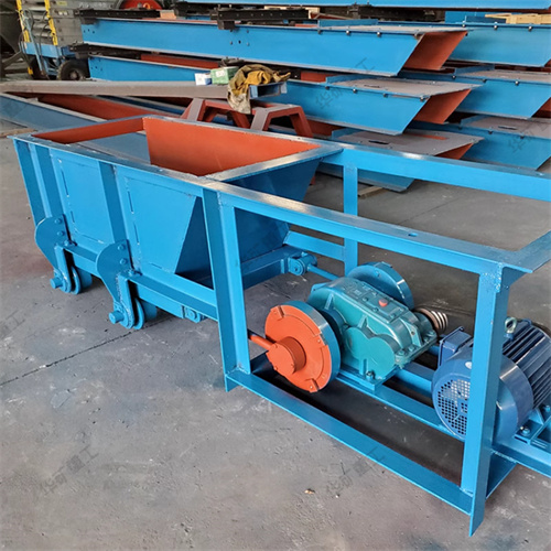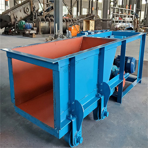 槽式給料機(jī)又稱往復(fù)式或擺動(dòng)式給料機(jī),它是貯礦槽排料應(yīng)用較早的一種給料設(shè)備。型式較多,其結(jié)構(gòu)的共同點(diǎn)是均裝有可控制料層高度的調(diào)節(jié)閘板;在輸料槽下部為一前后移動(dòng)的給料板。其不同點(diǎn)是給料板角度不一樣,一般為