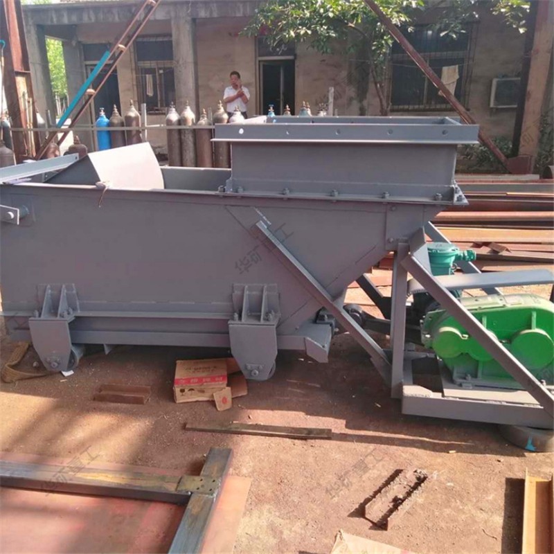 K型往復(fù)式給煤機(jī)是利用曲柄連桿機(jī)構(gòu)拖動(dòng)下傾5度的底板在輥上做直線往復(fù)運(yùn)動(dòng),從而把煤或其它磨琢性小,粘性不大的松散粒狀、粉狀物料從給料設(shè)備中均勻地卸到受料設(shè)備中。 K型往復(fù)式給料機(jī)適用于礦山、礦井、選煤廠、中轉(zhuǎn)站、輸煤車間、港口散料碼頭等散料轉(zhuǎn)運(yùn),可將散料經(jīng)料倉(cāng)或直接進(jìn)行均勻的轉(zhuǎn)載到膠帶機(jī)或其它篩選設(shè)備、貯存裝置上配合使用。實(shí)現(xiàn)對(duì)礦石、砂煤、糧食等散裝物料的均勻給料。本設(shè)備機(jī)體安裝于料斗下,傳動(dòng)裝置為懸掛式,根據(jù)給料量的大小可分:K0、K1、K2、K3、K4等幾種型號(hào)。