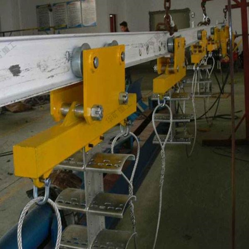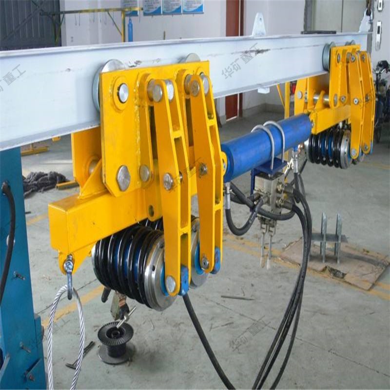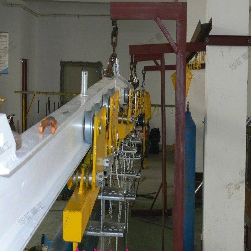 單軌吊車是用一條吊掛在巷道上空的特制工字鋼作軌道,由具有各種功能的吊掛車輛連成車組,用牽引設(shè)備牽引,沿軌道運行的系統(tǒng)。其牽引動力可由鋼絲繩、柴油機、蓄電池或風(fēng)動裝置提供。