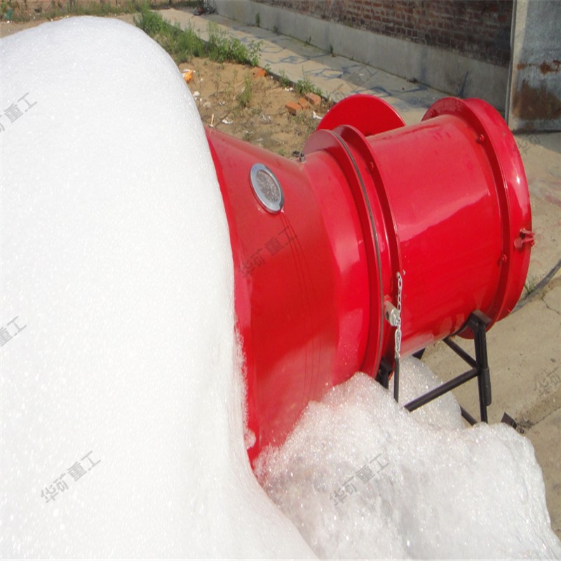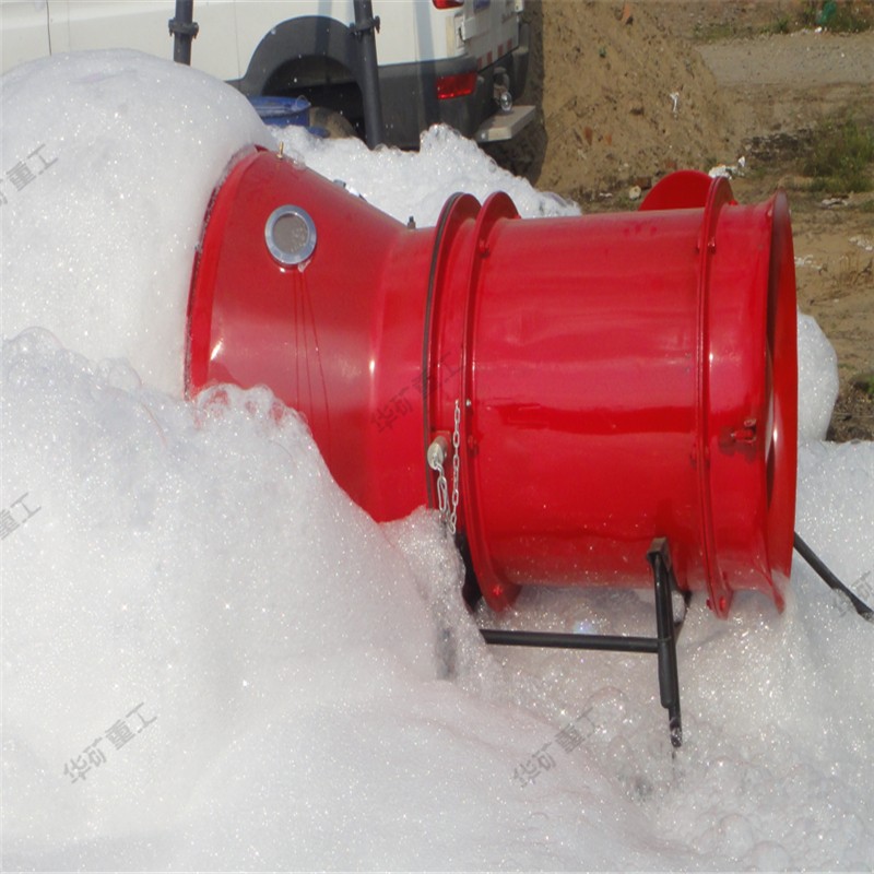 高倍數(shù)空氣泡沫具有滅火速度快、水漬損失小、成本低和無毒等優(yōu)點(diǎn)。實(shí)踐說明,高倍數(shù)泡沫滅火適用于撲滅煤礦井下巷道及地面,地下有限建筑空間。如煤炭、木材、油類火災(zāi)。由于驅(qū)動(dòng)風(fēng)壓高,可以在巷道中遠(yuǎn)距離火區(qū)的安全地點(diǎn)操作。高倍數(shù)泡沫能迅速覆蓋火源,切斷火場空氣的來源,隔斷輻射熱、熱對流、熱傳導(dǎo)的作用。高倍數(shù)泡沫在燃燒區(qū)汽化而吸收大量的汽化熱。能起隔熱、降溫作用,同時(shí)放出大量的水蒸氣,沖淡燃燒區(qū)含氧量,起著窒息的作用。