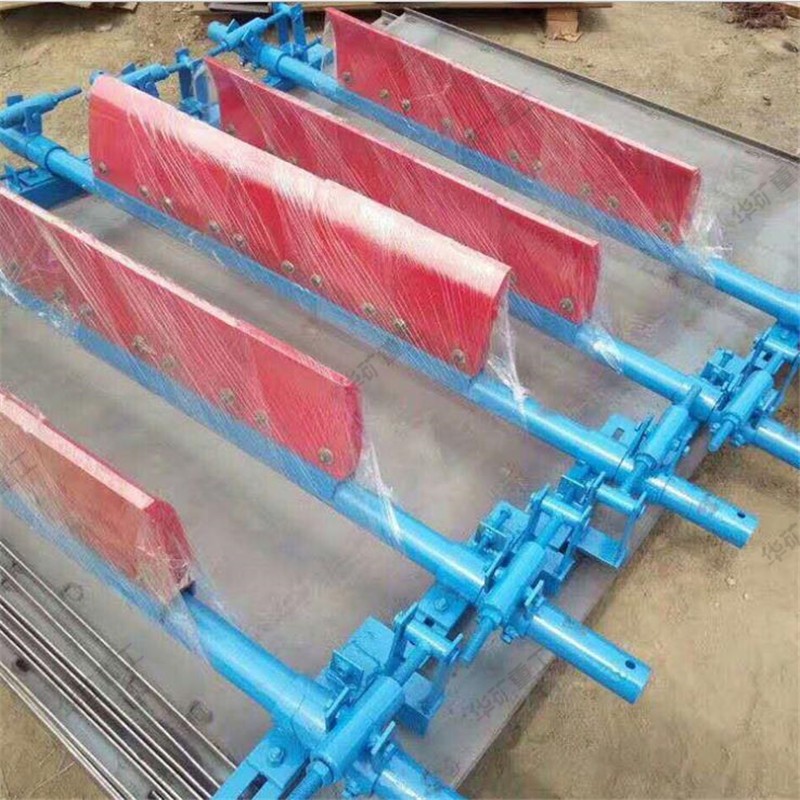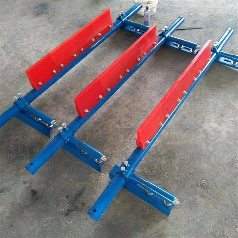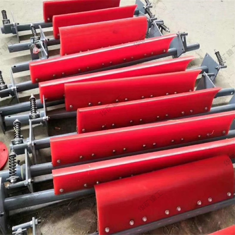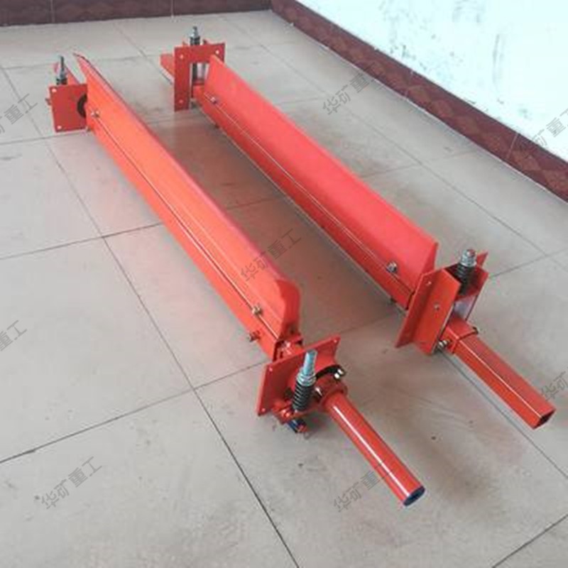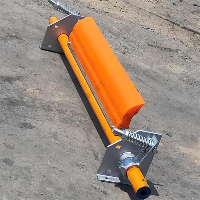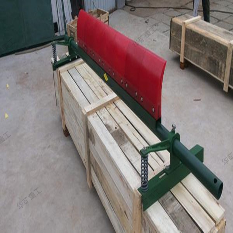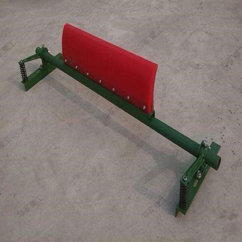 清掃器,刮板借彈簧壓力緊貼輸送帶的載荷面清掃卸載后粘結(jié)在輸送帶上的煤粉。清掃器在輸送機(jī)上有著不可忽視的作用。在運(yùn)行中,如果人為的清除機(jī)尾滾筒附著物,往往容易發(fā)生嚴(yán)重人身傷亡事故。而清掃器有及時、方便地、快速的清除滾筒附著物的特點(diǎn)。