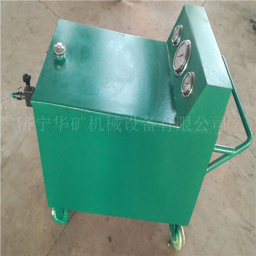 以靜壓水的水壓為動(dòng)力,通過(guò)增壓缸增壓,達(dá)到在有水源的地方,不需電力就可以擁有一個(gè)小型乳化液泵站的目的。為巷道維修、掘進(jìn)、邊角煤開(kāi)采、搶險(xiǎn)救災(zāi)等無(wú)泵站有水源的地方提供便利。工作時(shí)分兩個(gè)階段: